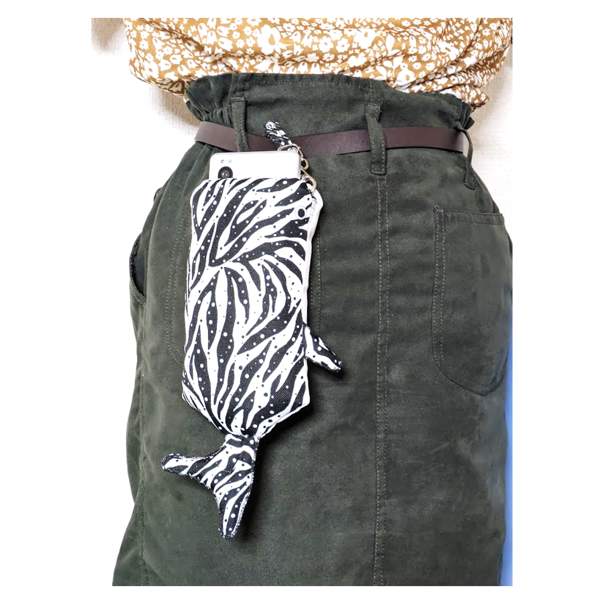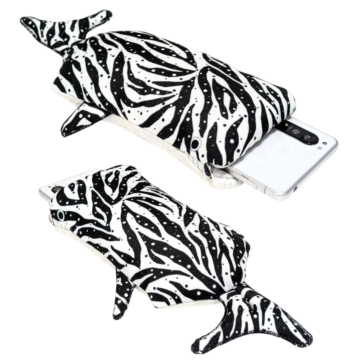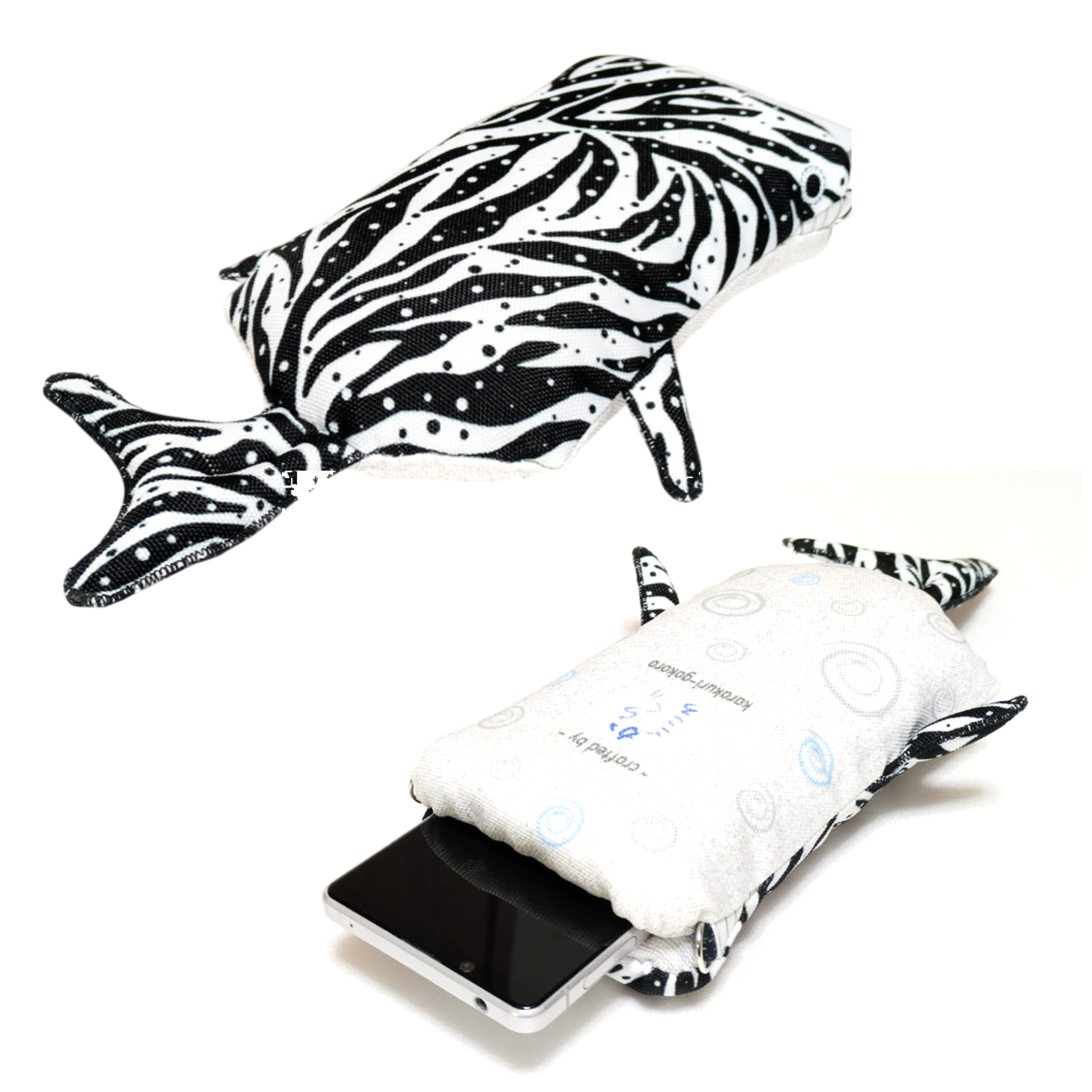 ジンベイザメの形態をしたスマホショルダーです。